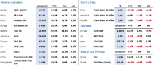 La renta variable cerraba la semana con subidas cercanas al 2% en Estados Unidos y del 1,25% en Europa. El S&P 500 terminaba la semana con una revalorización del 1,92%, y concluía la semana en 6.791,73 puntos tras haber marcado un nuevo máximo histórico en 6.807,06 puntos. Idéntico comportamiento experimentó el Nasdaq 100, que subía un 2,18% y dejaba su máximo histórico en 25.418,64 puntos para terminar cerrando en 25.358,16. El Euro Stoxx 50 ganaba un 1,18% al cerrar en 5.673,65 puntos, también marcaba un nuevo máximo que fijaba en 5.699,45 puntos. Por su parte, el Ibex 35 se anotaba un 1,64%, cerraba en 15857,40 puntos y se quedaba a menos de un 1,5% de su máximo histórico que data de noviembre de 2007.