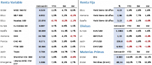 En los mercados de renta fija los precios de cierre estarían indicando estabilidad en los mercados, pero lo cierto es que los rangos de precios semanales son amplios, lo que sugiere una falta de tendencia en la rentabilidad de los bonos. Las decisiones de los bancos centrales, la evolución de la inflación, el comportamiento del mercado laboral y los riesgos geopolíticos seguirán marcando el nivel de volatilidad, mientras que el principal soporte para el mercado lo tendremos en los resultados empresariales que siguen siendo sólidos y continúan mejorando las previsiones de los expertos.